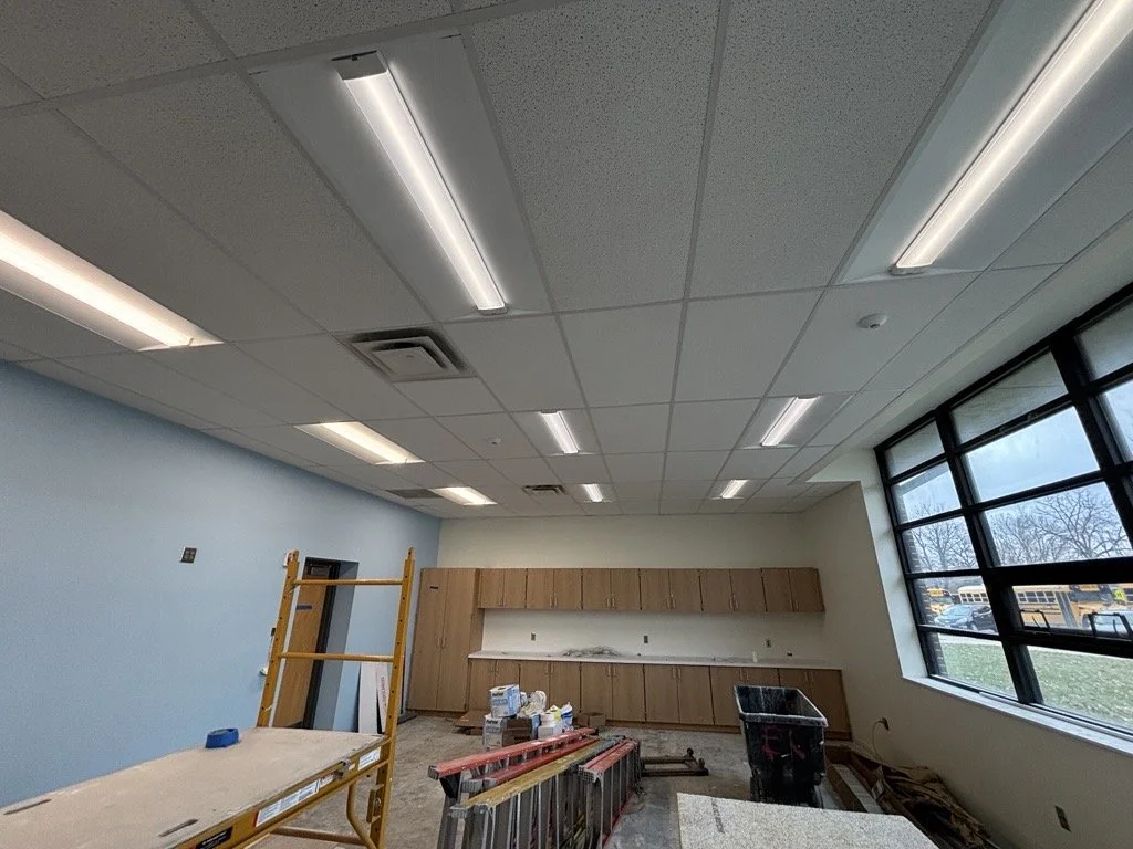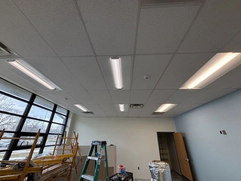 Drop ceilings & lights installed.